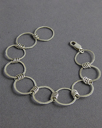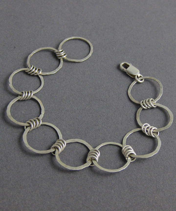 This bracelet features large hammered rings connected with small rounded rings. It is very light and graceful.