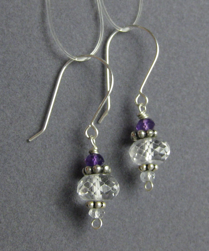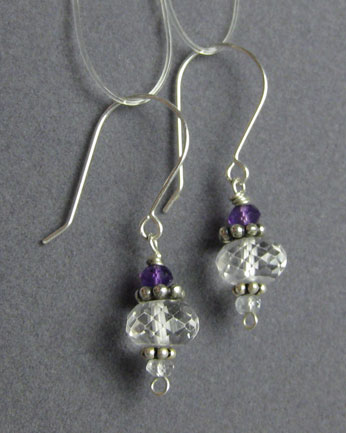 These simple, delicate earrings feature synthetic colorless sapphires and amethyst beads.