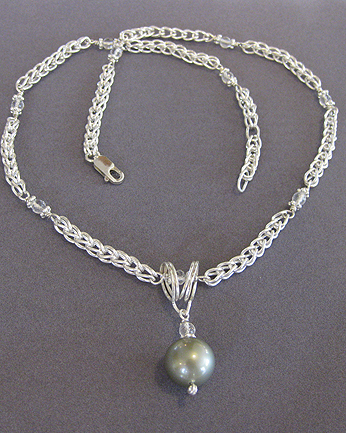 This handmade chain is dotted with faceted colorless quartz beads. It features a silvery gray tahitian pearl pendant.